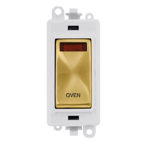Click GridPro GM2018NPWSB-OV 20AX Double Pole Switch with Neon Module printed "Oven" - Satin Brass (Polar White) CLICK GridPro Interchangeable Plat...