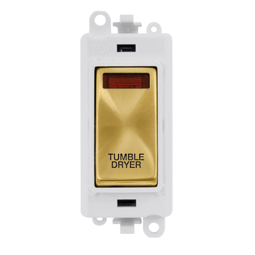 Click GridPro GM2018NPWSB-TD 20AX Double Pole Switch with Neon Module printed "Tumble Dryer" - Satin Brass (Polar White) CLICK GridPro Interchangea...