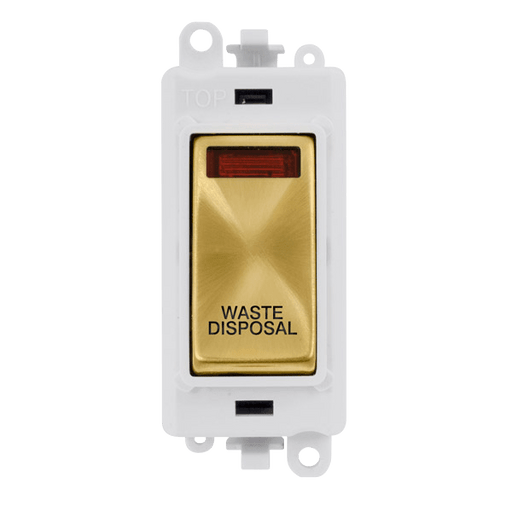Click GridPro GM2018NPWSB-WD 20AX Double Pole Switch with Neon Module printed "Waste Disposal" - Satin Brass (Polar White) CLICK GridPro Interchang...