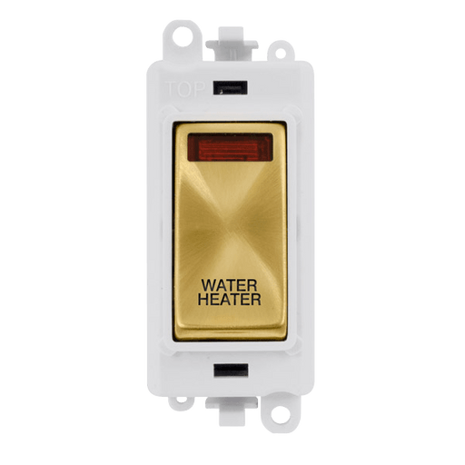 Click GridPro GM2018NPWSB-WH 20AX Double Pole Switch with Neon Module printed "Water Heater" - Satin Brass (Polar White)