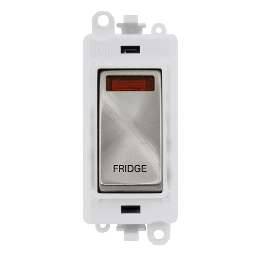 Click GridPro GM2018NPWSC-FD 20AX Double Pole Switch with Neon Module printed "Fridge" - Satin Chrome (Polar White)