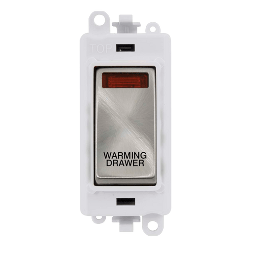Click GridPro GM2018NPWSB-WDR 20AX Double Pole Switch with Neon Module printed "Warming Drawer" - Satin Brass (Polar White) CLICK GridPro Interchan...