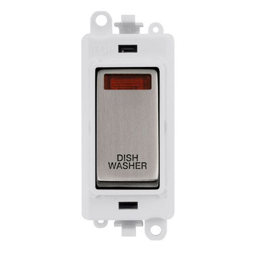 Click GridPro GM2018NPWSC-DW 20AX Double Pole Switch with Neon Module printed "Dishwasher" - Satin Chrome (Polar White)