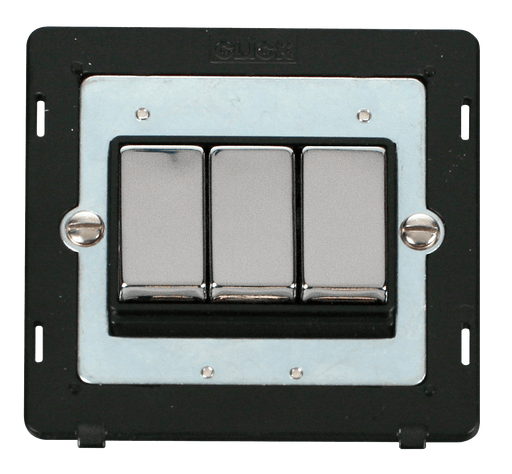 Click Definity SIN413BKCH Ingot 10AX 3 Gang 2 Way Switch Insert - Black / Chrome CLICK Definity Screwless Wiring Accessories Definity incorporates ...
