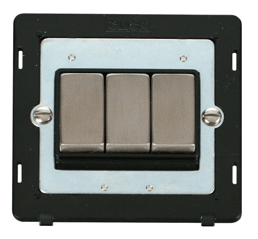 Click Definity SIN413BKBS Ingot 10AX 3 Gang 2 Way Switch Insert - Black / Brushed Stainless CLICK Definity Screwless Wiring Accessories Definity in...