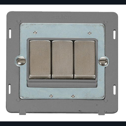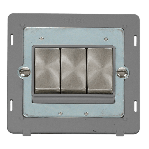 Click Definity SIN413GYBS 10AX Ingot 3 Gang 2 Way Plate Switch Insert - Grey / Brushed Stainless CLICK Definity Screwless Wiring Accessories Defini...