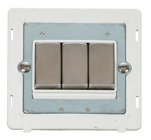 Click Definity SIN413PWBS Ingot 10AX 3 Gang 2 Way Switch Insert - Polar White / Brushed Stainless CLICK Definity Screwless Wiring Accessories Defin...