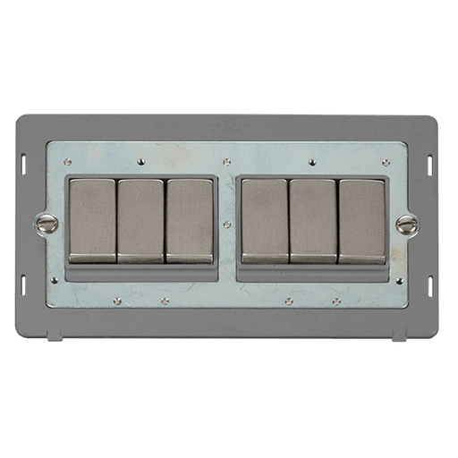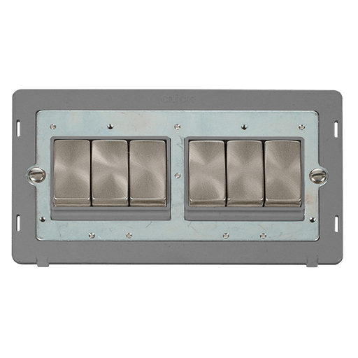 Click Definity SIN416GYBS 10AX Ingot 6 Gang 2 Way Plate Switch Insert - Grey / Brushed Stainless CLICK Definity Screwless Wiring Accessories Defini...