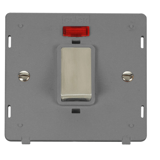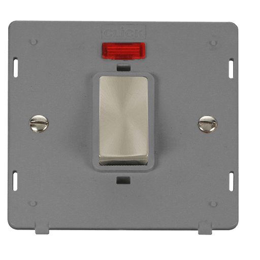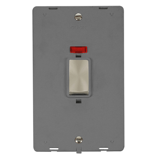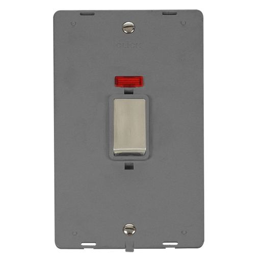 Click Definity SIN501GYSS 50A Ingot 1 Gang Double Pole Plate Switch With Neon Insert - Grey / Stainless Steel