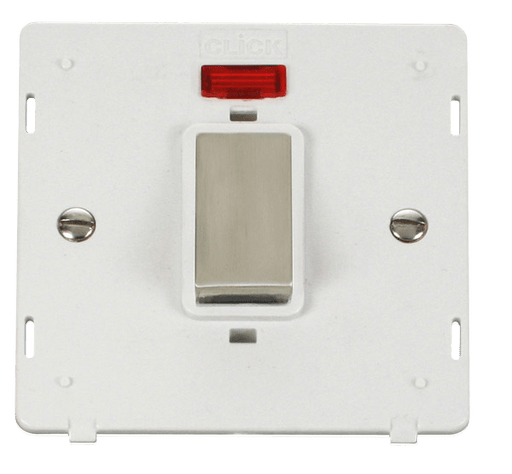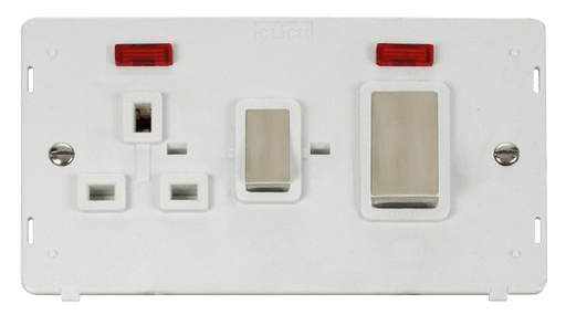 Click Definity SIN505PWBS Ingot 45A DP Switch + 13A DP Sw. Socket With Neons Insert - Polar White / Brushed Stainless CLICK Definity Screwless Wiri...