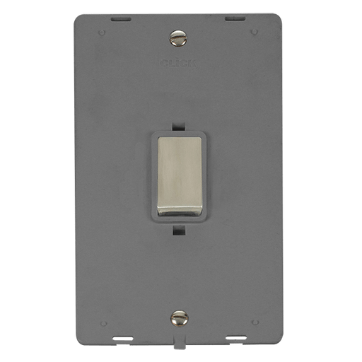Click Definity SIN500GYBS 50A Ingot 1 Gang Double Pole Plate Switch Insert - Grey / Brushed Stainless CLICK Definity Screwless Wiring Accessories D...
