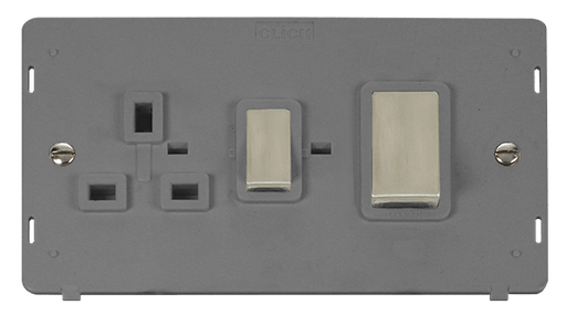 Click Definity SIN504GYSS 50A Ingot 2 Gang Double Pole Switch With 13A Double Pole Switched Socket Outlet Insert - Grey / Stainless Steel
