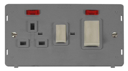 Click Definity SIN505GYSS 50A Ingot 2 Gang Double Pole Switch With 13A Double Pole Switched Socket Outlet & Neons Insert - Grey / Stainless Steel