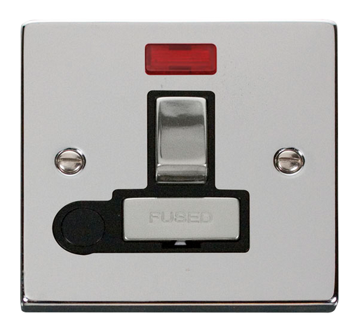 Click Deco VPCH553BK Victorian 13A Ingot Fused Spur + Neon + Flex Outlet - Polished Chrome (Black)
