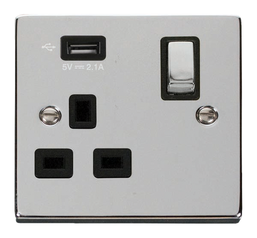 Click Deco VPCH571UBK Victorian 13A Ingot 1G Switched Socket + 1x2.1A USB - Polished Chrome (Black)