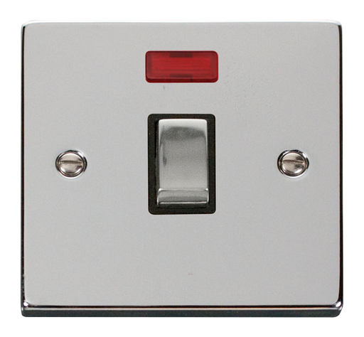 Click Deco VPCH723BK Victorian 20A Ingot DP Switch + Neon - Polished Chrome (Black)