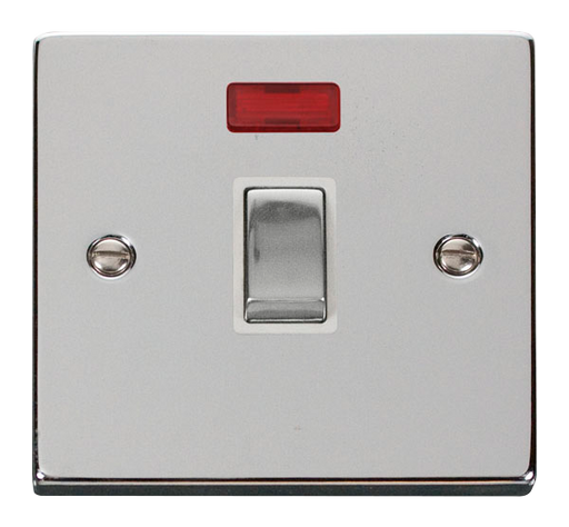 Click Deco VPCH723WH Victorian 20A Ingot DP Switch + Neon - Polished Chrome (White)