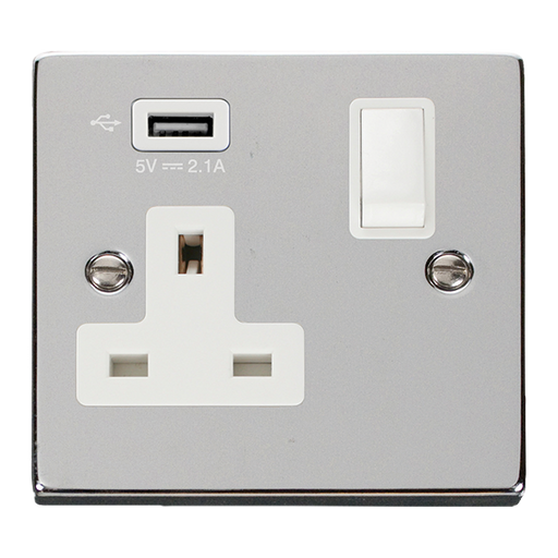 Click Deco VPCH771UWH Victorian 13A 1G Switched Socket + 1x2.1A USB - Polished Chrome (White) CLICK DECO - Decorative Metal Wiring Accessories in ...