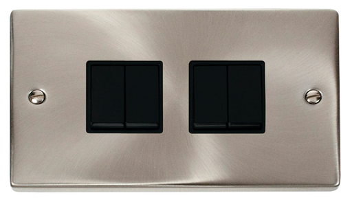 Click Deco VPSC019BK Victorian 10AX 4-Gang 2-Way Plate Switch - Satin Chrome (Black)