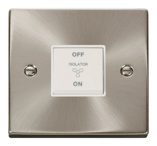 Click Deco VPSC020WH Victorian 10A 3 Pole Fan Isolation Plate Switch - Satin Chrome (White)