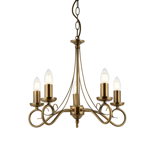 Endon 180-5AN Trafford 5lt Pendant Antique brass plate 5 x 60W E14 candle (Required)