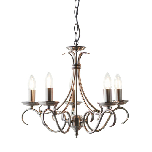 Endon 180-5AS Trafford 5lt Pendant Antique silver effect plate 5 x 60W E14 candle (Required)