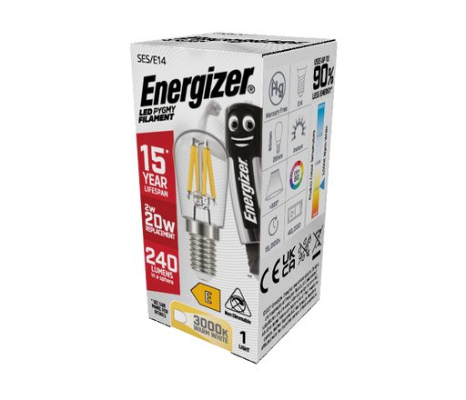 Energizer S13562 2W 240lm E14 SES Filament Pygmy LED Bulb Warm White 3000K Blister (2 Pack) Energizer products are recognised as one of the most tr...