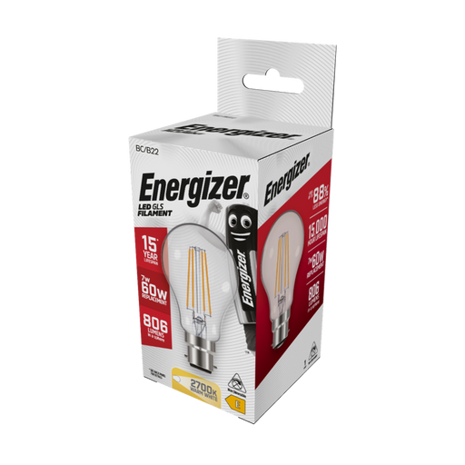 Energizer S12851 7W 806lm B22 BC GLS Filament LED Bulb Warm White 2700K Dimmable Energizer’s range of LED lamps and fittings for the domestic and c...