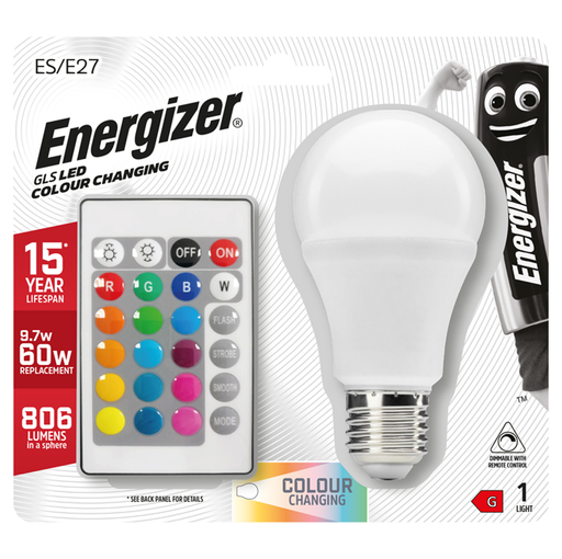 Energizer S14542 9W 806lm E27 ES GLS Colour Changing with Remote Control Energizer’s range of LED lamps and fittings for the domestic and commer...