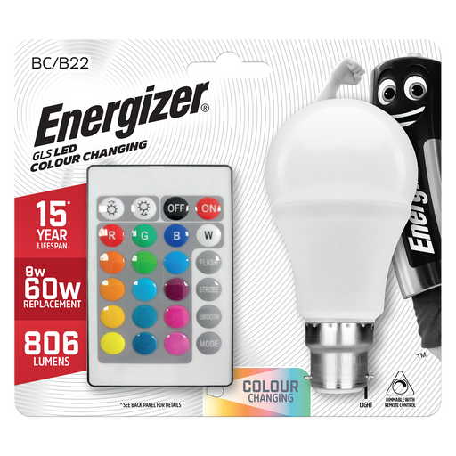 Energizer S14543 9W 806lm B22 BC GLS Colour Changing with Remote Control Energizer’s range of LED lamps and fittings for the domestic and commer...