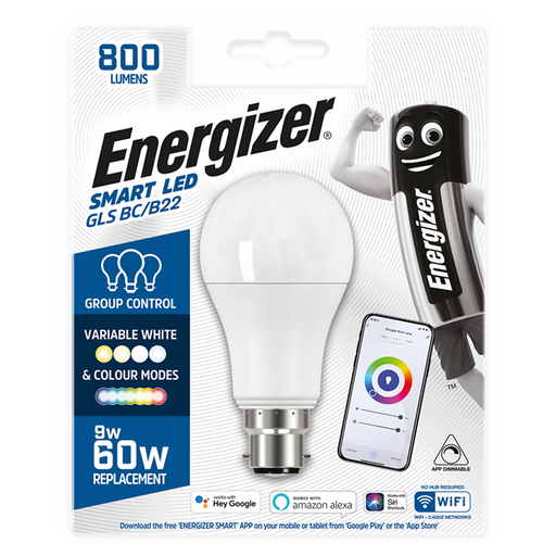 Energizer Smart 9W 800lm B22 BC GLS Colour Changing Energizer Smart is a range of smart LED technology brought to you by household brand, Energi...