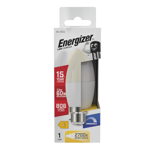 Energizer S29821 7.3W 806lm B22 BC Candle LED Bulb Opal Warm White 2700K Dimmable Energizer products are recognised as one of the most trusted and ...