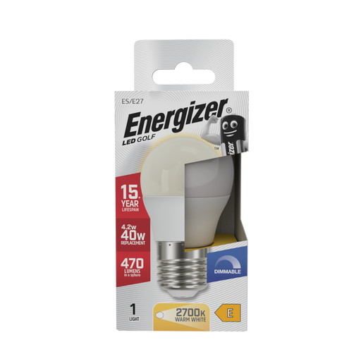 Energizer S29773 4.2W 470lm E27 ES Golf LED Bulb Opal Warm White 2700K Dimmable Energizer products are recognised as one of the most trusted and hi...