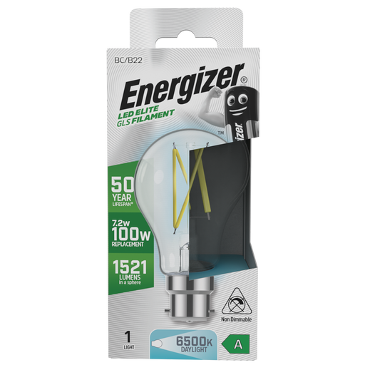Energizer S29635 A Rated LED Elite GLS B22 Filament 1521lm 7.2W 6500K (Warm White)(12 Pack) Energizer products are recognised as one of the most tr...