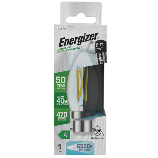 Energizer S29639 A Rated LED Elite Candle B22 Filament 470lm 2.2W 6500K (Daylight)