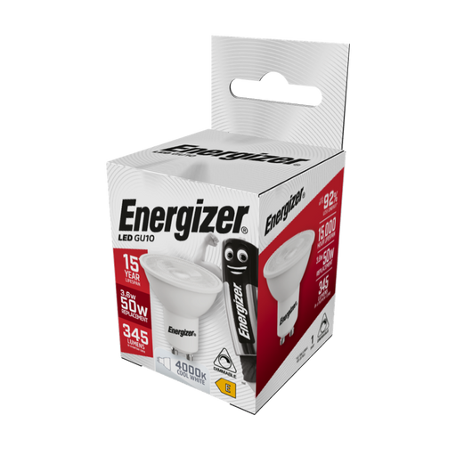 Energizer S15161 4.2W 345lm GU10 Spotlight LED Bulb Cool White 4000K (4 Pack) Energizer’s range of LED lamps and fittings for the domestic and comm...