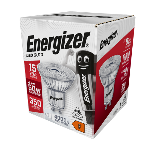 Energizer S9409 4.7W 350lm GU10 Spotlight LED Bulb Full Glass Cool White 4000K Energizer products are recognised as one of the most trusted and hig...