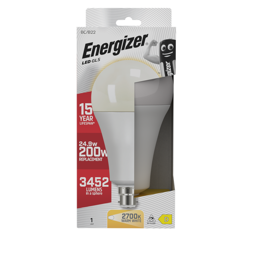 Energizer S29837 24.9W 3452lm E27 ES GLS LED Bulb Opal Warm White 2700K Energizer products are recognised as one of the most trusted and highly des...