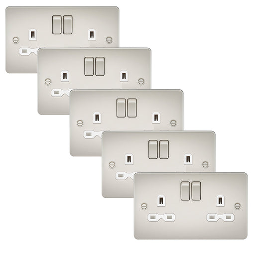 Knightsbridge FPR9000PLWx5 Flat Plate 13A 2G DP Switch Socket - Pearl + White Insert (5 Pack)