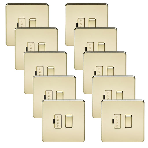 Knightsbridge FP6300PBx10 Flat Plate 13A Switched Fused Spur Unit - Polished Brass (10 Pack)