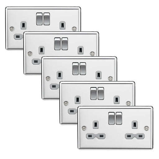 Knightsbridge FPR9000PCGx5 Flat Plate 13A 2G DP Switch Socket - Polished Chrome + Grey Insert (5 Pack)
