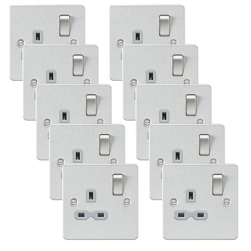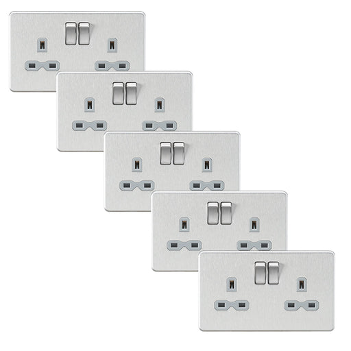Knightsbridge CL9BCGx5 Rounded Edge 13A 2G DP Switched Socket - Brushed Chrome + Grey Insert (5 Pack)