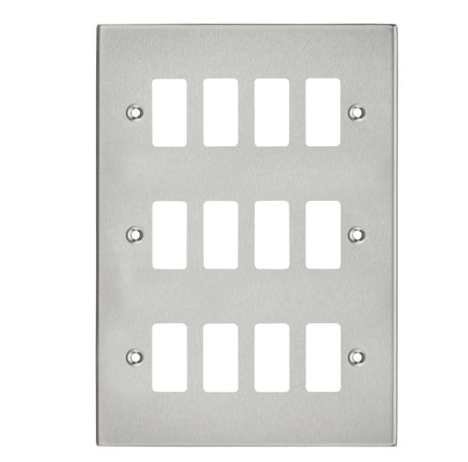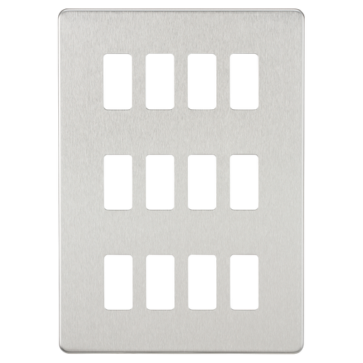Knightsbridge GDFP012BC Flat Plate 12G Grid Faceplate - Brushed Chrome Designed and finished to coordinate with the Flat Plate Switches and Socke...