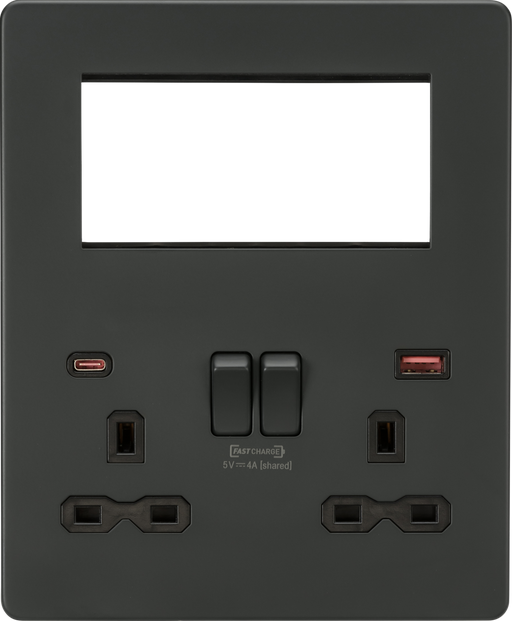 Knightsbridge SFR994AT Screwless Small Multimedia Combination Plate with FASTCHARGE - Anthracite
