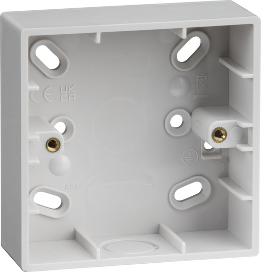 Knightsbridge SN1610 White Square Edge Single 47mm Pattress Box + Earth Terminal