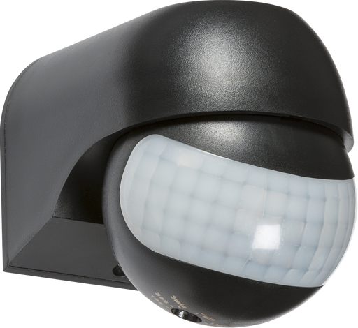 Knightsbridge OS004B IP44 180° PIR Sensor - Black Stand-alone PIR unit to suit a variety of installations IP44 rated 180° field of detection 12m...