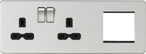 Knightsbridge SFR192LBC Screwless 13A 2G DP Socket + 2G Modular Combination Plate (L) - Brushed Chrome + Black Insert