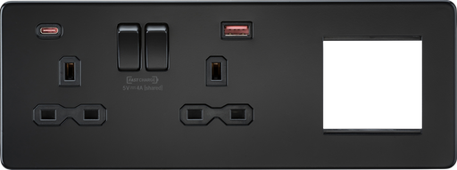 Knightsbridge SFR998MBB Screwless Combination Plate + 2xUSB(A+C) FAST - Matt Black + Black Rocker