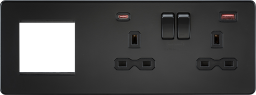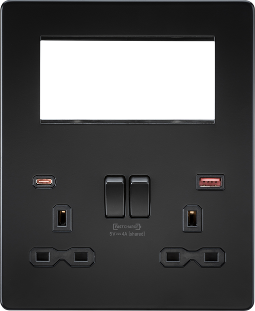 Knightsbridge SFR992LMBB Screwless 2G DP Socket +2xUSB (A+C) FAST +2G Modular Combi. Plate (L) - Matt Black + Black Rocker