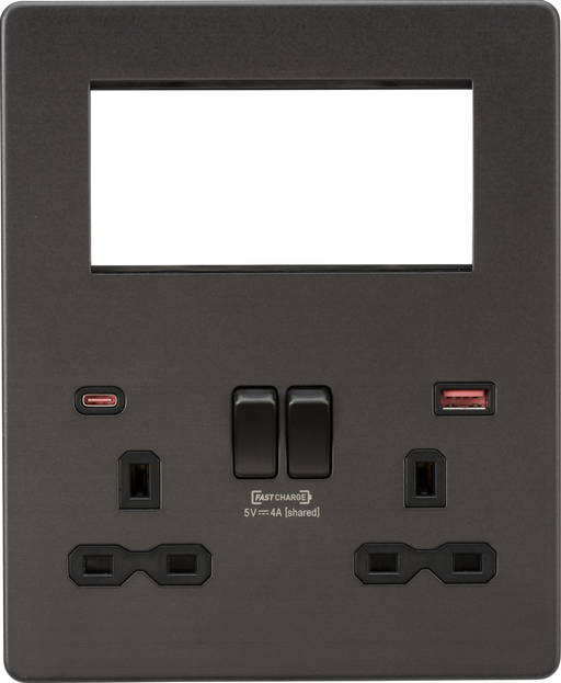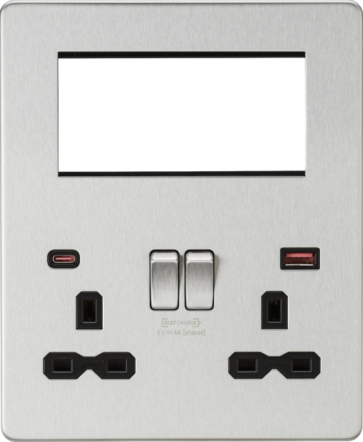 Knightsbridge SFR992LBC Screwless 13A 2G DP Socket + 2xUSB (A+C) FAST + 2G Modular Combination Plate (L) - Brushed Chrome + Black Insert